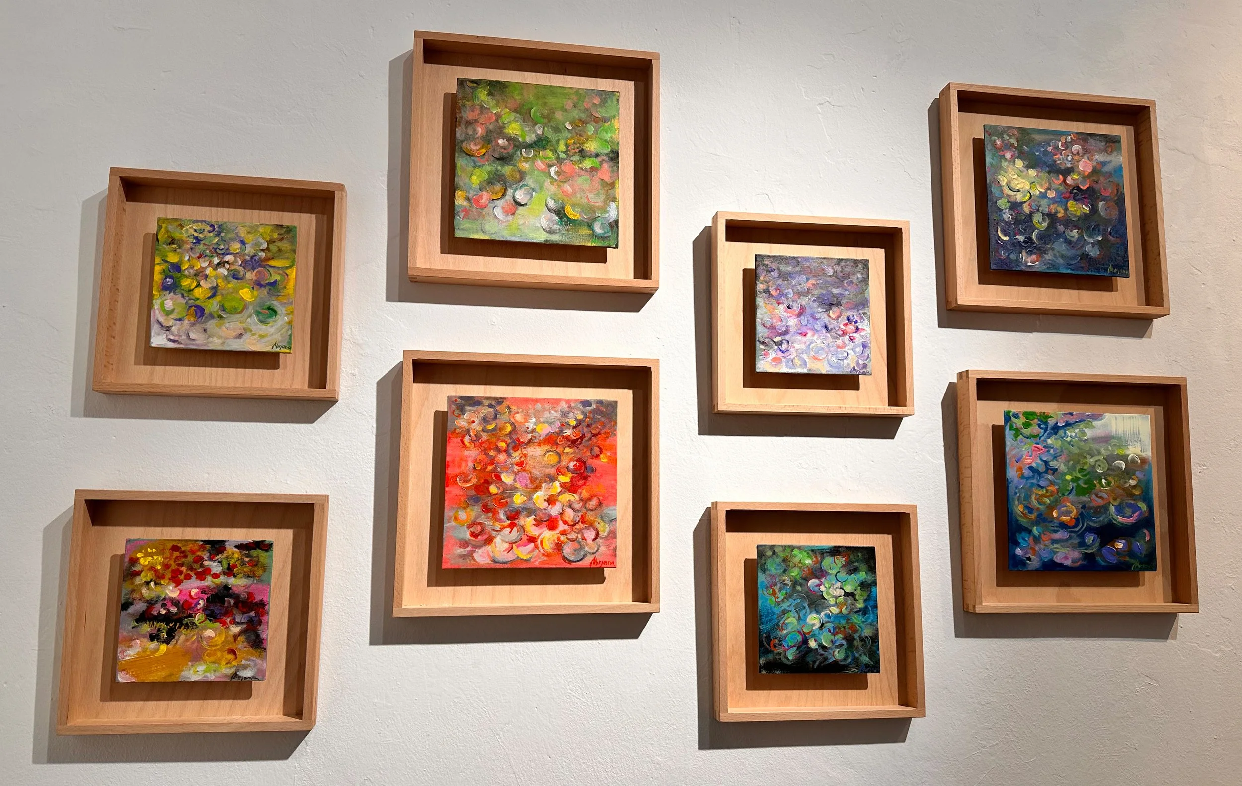 The Butterfly Effect 2025 Serie aus 4 Bildern, Acryl auf Holz, je 15x15cm